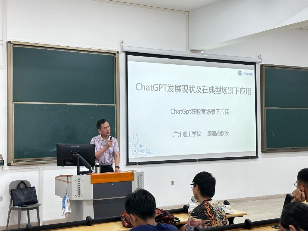 在数智化时代对高素质应用型人才培养的新要求下,为了进一步促进公司教学成果培育,拓宽员工对人工智能ChatGpt的认知,公司于5月16日下午,廉迎战教授在惠州校区1栋教学楼410教室,为同学们带来了题为《人工智能ChatGpt技术发展现状及其典型应用场景》的学术讲座。此次讲座由辅导员朱颖老师组织,公司2023级的145位同学积极参与。