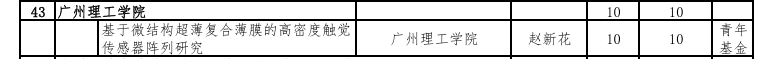 近日,广东省基础与应用基础研究基金委员会正式公布了2024年度广东省基础与应用基础研究基金省市联合基金(粤佛、粤莞、粤惠)拟立项结果。公司赵新花博士申报的区域联合基金-青年基金项目《基于微结构超薄复合薄膜的高密度触觉传感器阵列研究》成功获得立项资助,资助经费10万元。