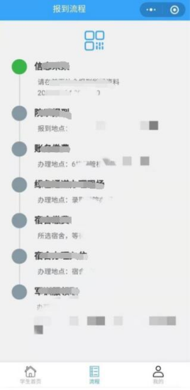 考生点击“流程”菜单,可查看入学报到流程的各项环节。其中“信息采集”为报到前环节。其他为报到中环节,可在报到现场按要求办理。各环节的“是否必办”和办理地点以报到当日的提示信息为准。(具体报到流程等后续更新)