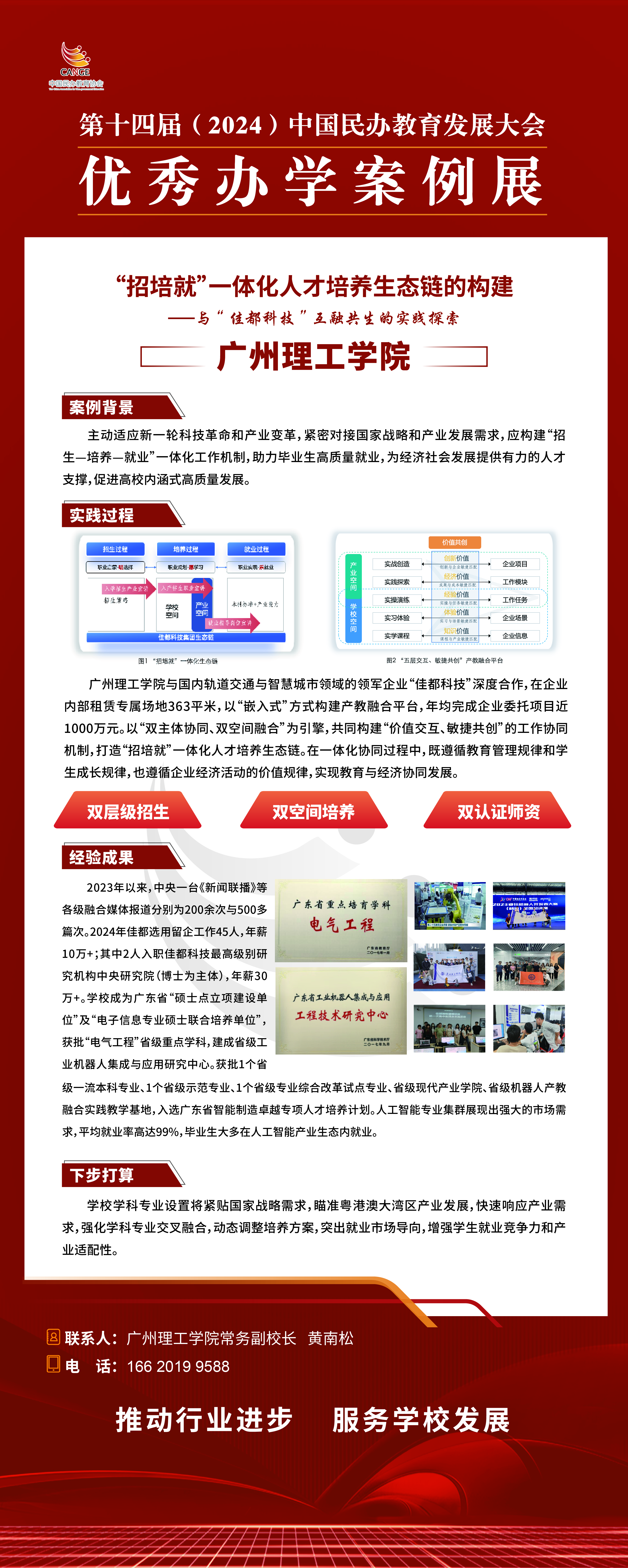 2025年1月11至12日,由中国民办教育协会主办的第十四届(2024)中国民办教育发展大会在京成功举行。本届大会从会前征集的289所民办高校的600多个案例中,经专家严格评审、协会常务理事会审定,共评选出具有较强实践性、创新性和可推广性的32所民办高校的优秀办学案例,在本届大会上予以表彰。其中,包括公司在内的7所高校案例在本届大会“民办高校高质量创新发展与老年教育论坛”上做交流发言,16所高校案例在大会现场进行展板展示。以下为公司优秀办学案例内容。