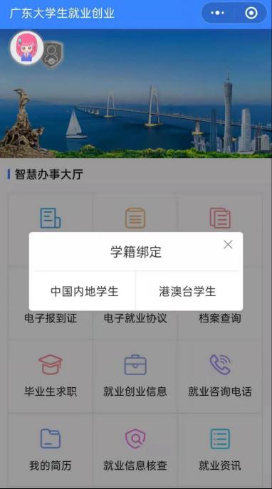 如果还没绑定学籍,请先完成学籍绑定,具体操作请参看:《@高校毕业生,快来绑定你的学籍、创建你的电子简历!》;如果已经完成绑定学籍的同学可以忽略这个步骤。