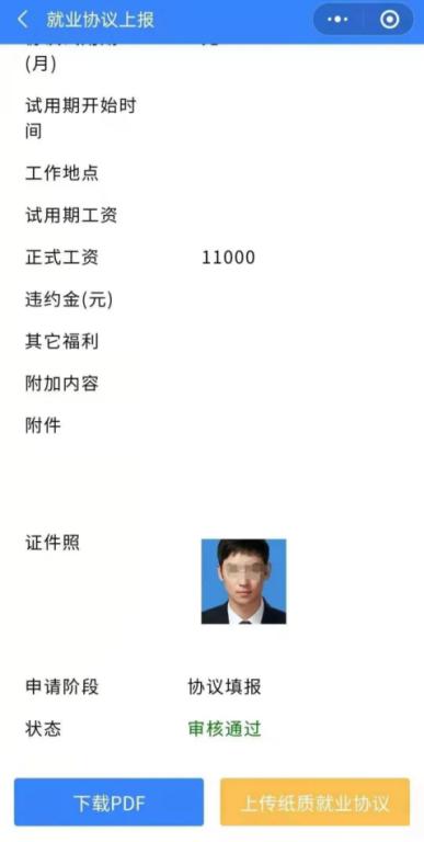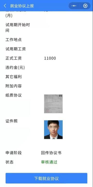 上传签字盖章的纸质就业协议书后,待院校审核完成自动生成带院校电子签章的电子就业协议书,院校和员工都可自行下载打印。