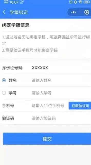 如果尚未绑定学籍(省内)或者绑定身份(省外)的同学,可以先行绑定身份信息,港澳台的同学也可以进行身份信息填报。