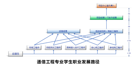 通信工程类的员工,一般只有应用类的岗位,通过毕业三年后的岗位锻炼,成为工程师,毕业后5-6年成为高级工程师和主管经理,之后就是项目经理。