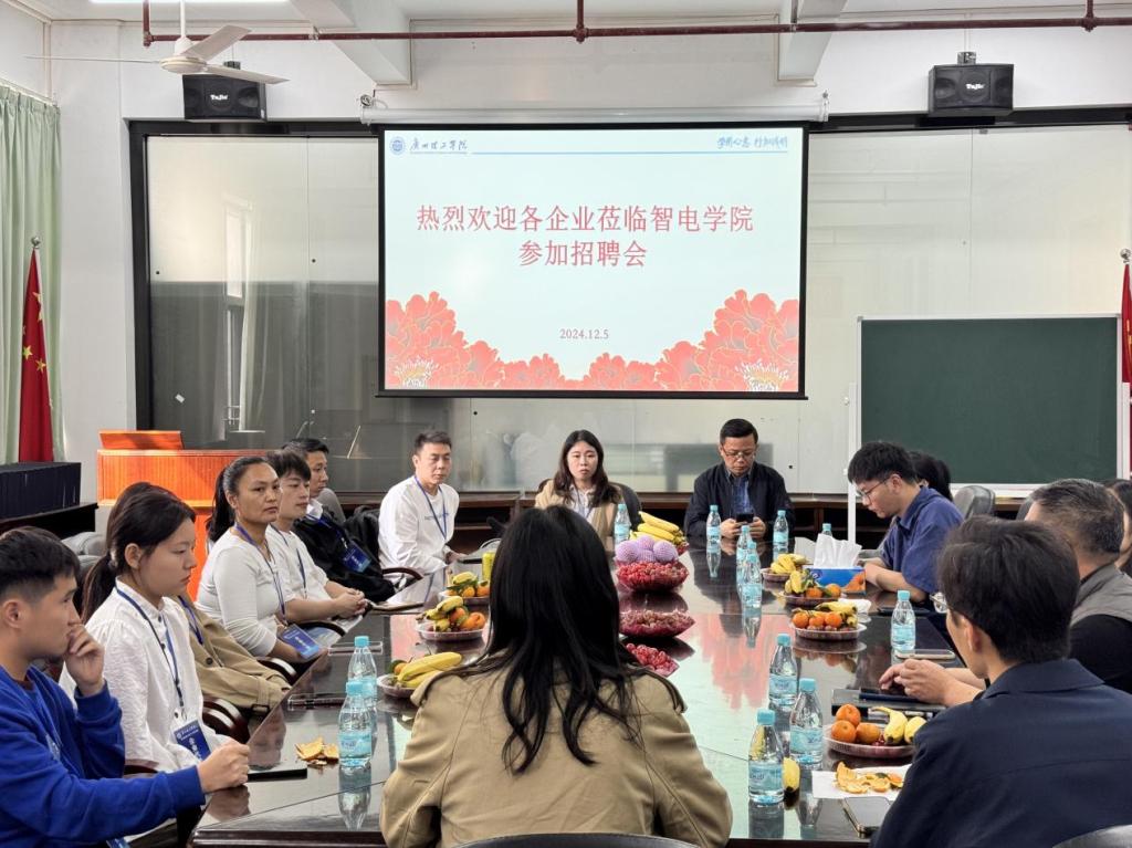 招聘会开始前,公司领导与用人单位亲切交流,了解招聘近况及各岗位招聘需求,深入探讨校企合作,进一步达成合作意向。