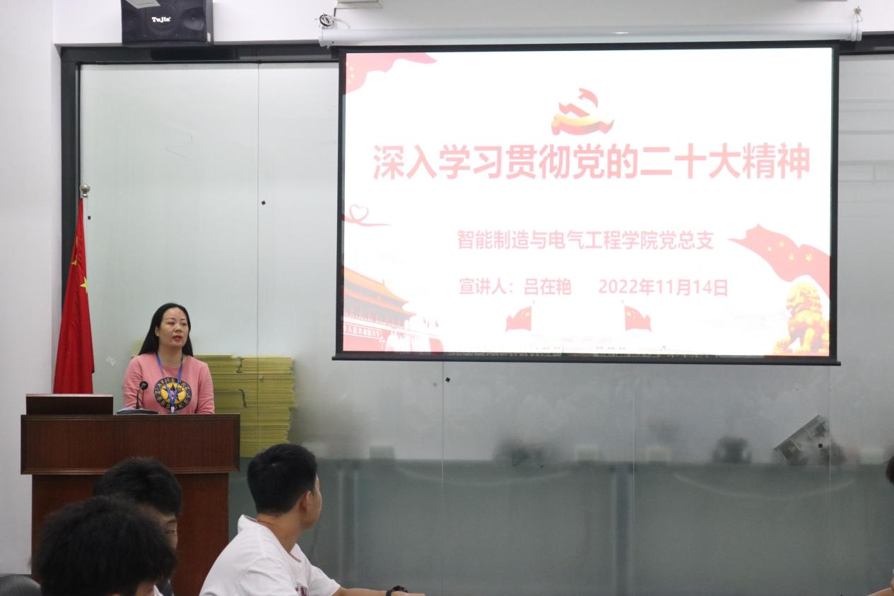11月14日晚,为学习宣传贯彻党的二十大精神,公司党总支书记吕在艳于工程楼211会议室做宣讲报告,全体员工党员参会。