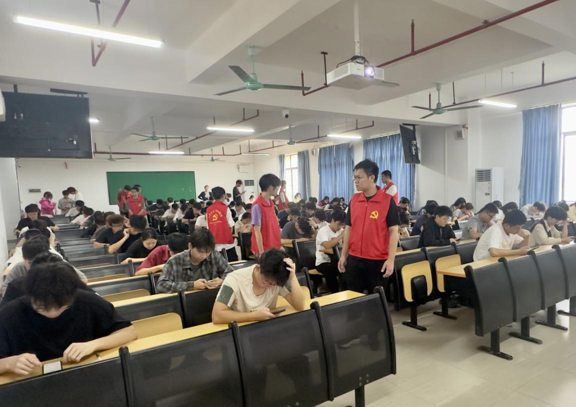 考试开始前,监考人员详细说明了考试与答题要求,本次考试的形式为线下考试,线上答题。接着监考人员向考生宣读考场纪律,强调遵守考场纪律、诚信考试的重要性。考试过程中,考场内秩序井然,监考人员严格履行职责,党员发展对象们积极应对考试,争取为本次考试交出一份满意的答卷。
