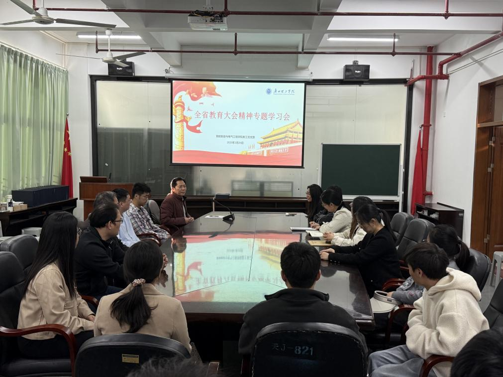 教工党支部副书记袁增强同志带领与会党员开展学习,系统传达了全省教育大会的重要指示和核心内容,会议明确,2025年,全省教育系统要牢牢把握立德树人根本任务,持续提升教育公共服务质量和水平,深入推动教育科技人才良性循环,全面深化教育综合改革、扩大对外开放,培养造就高水平教师队伍。他强调,我们要坚持不懈地用习近平新时代中国特色社会主义思想凝心铸魂,全方位落实立德树人的教育根本任务,坚持党对教育事业的全面领导,将教育优先发展理念深入贯彻到各项工作中去。