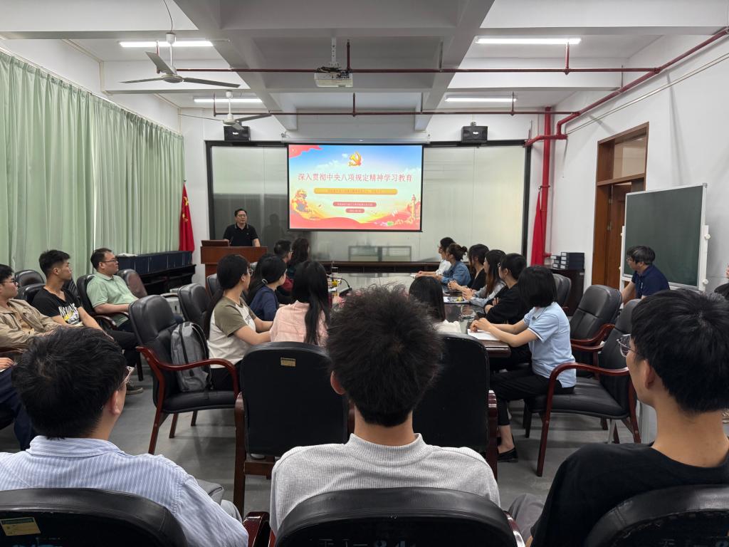 会上,袁增强同志传达了相关通知文件精神,组织学习中央八项规定及其实施细则精神等相关学习内容。袁增强同志详细解读了中央八项规定的主要内容与重要意义。中央八项规定自出台以来,对改进工作作风、密切联系群众发挥了极为关键的作用,这一精神同样适用于教育领域,