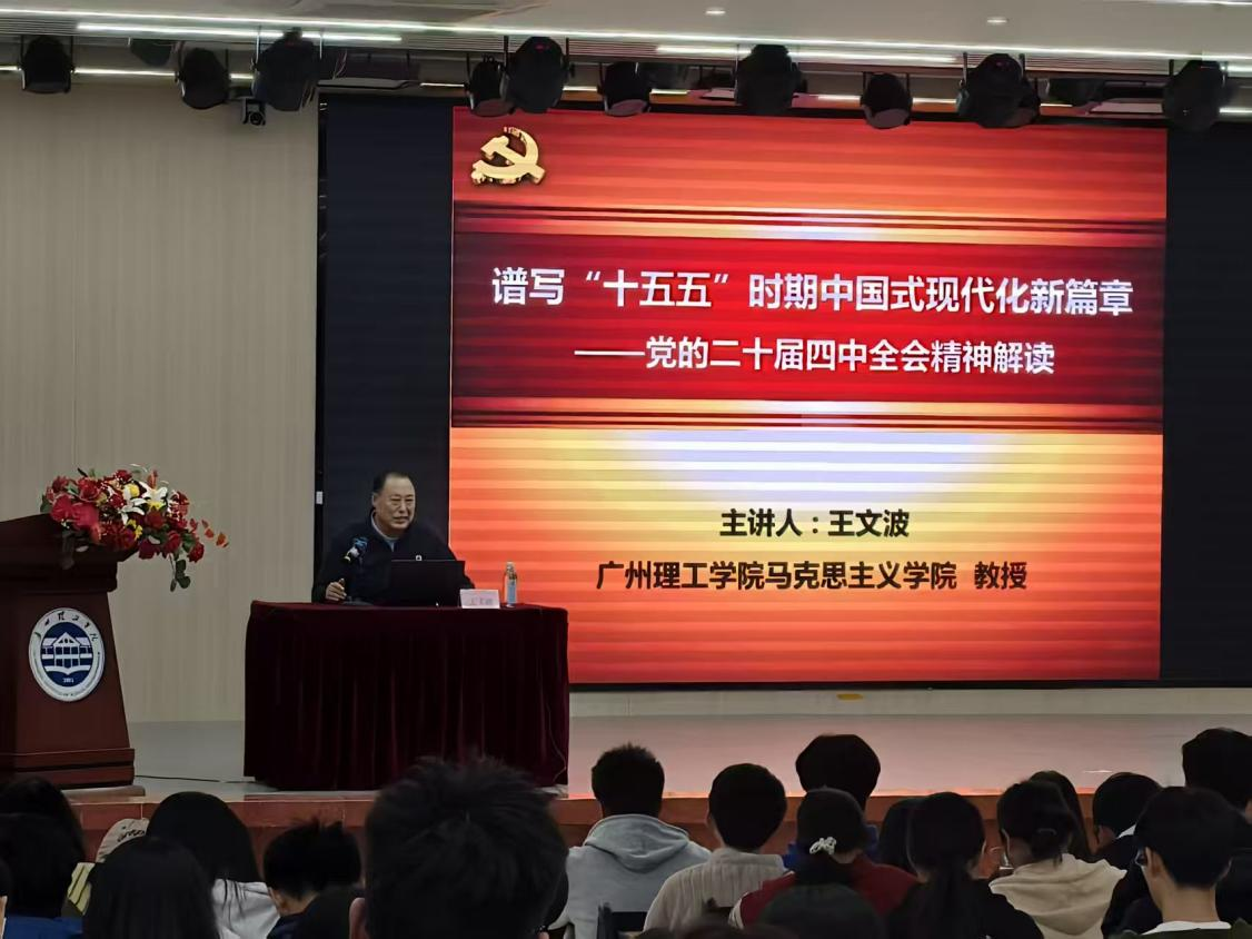 讲座开始,王文波教授围绕党的二十届四中全会报告中关于中国式现代化的重要论述,结合“十五五”时期的发展目标与路径,进行了系统且生动的解读。他详细阐述了新时代背景下中国式现代化的核心内涵与实践要求,鼓励全体发展对象坚定理想信念,增强责任担当,积极投身于国家现代化建设进程中。