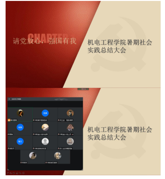 8月24日,机电工程公司暑期社会实践队开展线上社会实践总结大会,队长召开线上会议,对本次社会实践进行总结。首先是各个队员依次发表自己对此次社会实践的认识和收获,并整理好各队员的个人实践报告和实践日记,对最后上交各项材料做收尾工作。