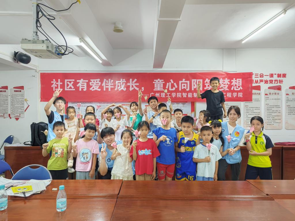 下午,广理 “童心启航” 社会实践队在新塘新世界社区开展了 “巧手折花艺,指尖绽繁花” 折纸花创作活动。大家围坐在一起,用一张张彩纸勾勒出花草的灵动,让平凡的纸张在指尖焕发别样生机。课堂开始,张康老师先给大家展示了自己的折纸花作品,有花瓣层层舒展的月季,有带着露珠般娇憨的铃兰,还有花瓣边缘带着波浪纹的康乃馨。老师边展示边讲解,还特意带来了不同年代的折纸图谱照片,从简单的几何造型到复杂的花卉纹样,让大家直观感受到折纸艺术的传承与演变。孩子们瞪大眼睛凑近看,小声讨论着 “这个花瓣怎么折出来的”,满是好奇与期待。随后到了实操环节,桌上整齐摆着红、黄、粉、紫等各色彩纸,还有用来做花茎的细竹签和装饰用的绿色皱纹纸。张康老师一步步分解步骤:“先把纸沿中线对折成正方形,再像折小扇子那样折出褶皱……” 小朋友都跟着步骤慢慢折,手指捏着纸边反复调整角度,在其他的队伍同学的帮助下,小朋友们都出色的完成了属于自己的折纸花。此次折纸花活动,不仅让大家在折折剪剪中学会了基础的折纸技巧,更在动手过程中体会到创意表达的乐趣。