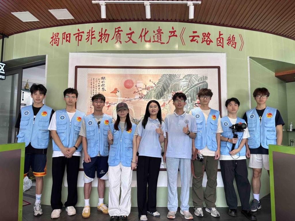 为响应广东省“百千万工程”与乡村振兴号召,守护濒危非遗文化根脉,太阳成tyc7111cc“鹅卤承香”实践队于2025年7月奔赴揭阳市揭东区云路镇。队伍由3名教师带队,10名员工组成,涵盖多学科背景。核心使命是深度体验、系统研习云路卤鹅非遗制作技艺,并通过摄制纪录片、撰写文稿、探索数字化路径、多平台精准宣传(如制作宣传视频、开展直播)等方式活化传承,同时联合传承人开展志愿活动,助力当地特色产业发展与文化弘扬,为乡村振兴注入青春动能。