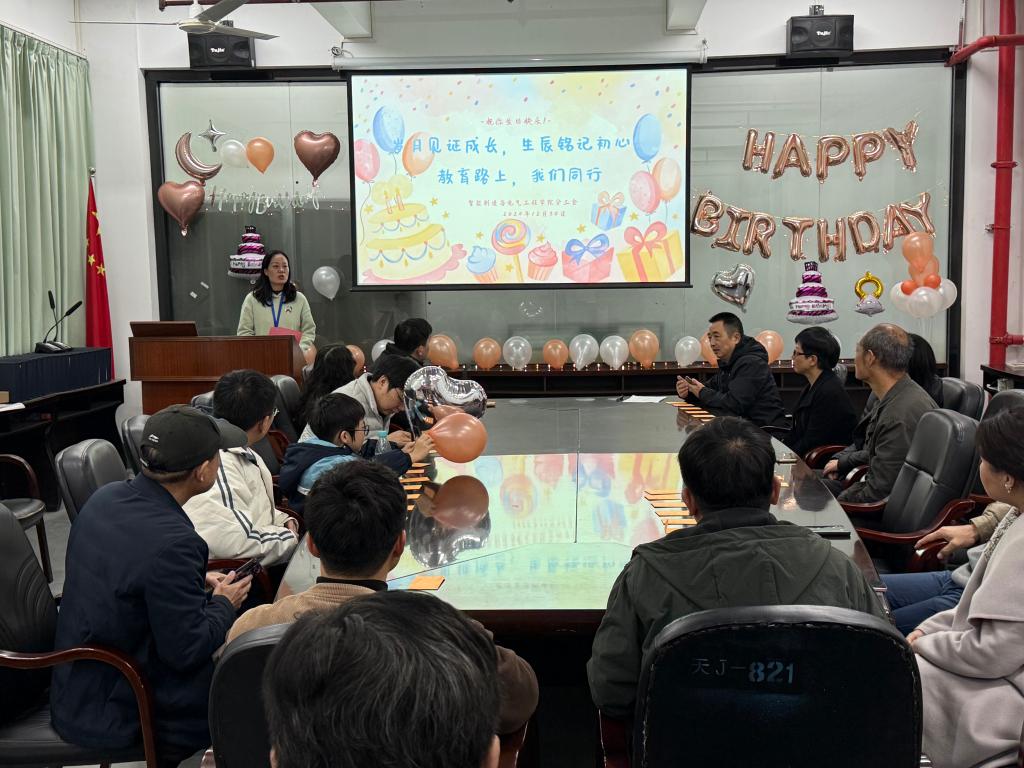 12 月 30 日晚,太阳成tyc7111cc洋溢着喜庆与欢乐的氛围,公司为2024年第四季度过生日的50位“寿星”老师们精心筹备的集体生日会在工程楼211室温馨举行。