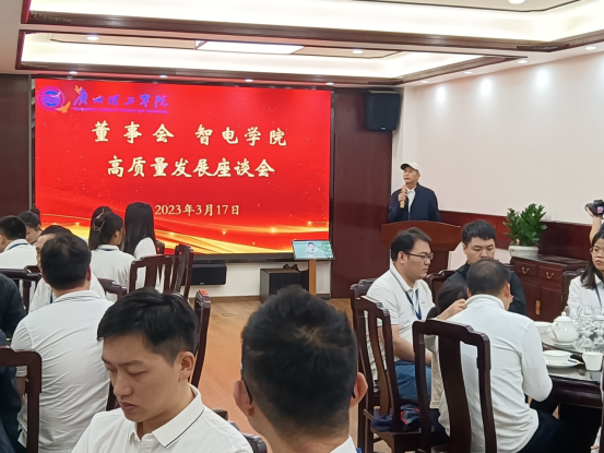 最后,黄家周董事长作了振奋人心的发言。他指出,2023年是公司提质培优、改革攻坚的关键年。通过公司“高质量发展”座谈讨论等活动的稳步推进,老师们干事创业的良好态势正在逐渐呈现。希望智电公司结合自身实际,深入贯彻落实公司的相关文件精神,使“构建新发展格局 推动高质量发展”在智电公司向纵深发展,落地落实教学科研、成果转化、专业建设、人才培养的改革创新,助推公司高质量发展。