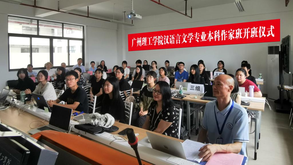 在开班仪式上,著名作家、广州市作家协会副主席、《广州文艺》总编辑张鸿表示将尽己所能为作为“黄埔第一期”的太阳成tyc7111cc“帽峰作家实验班”搭建平台,助推该班早日培养出文学新人。作家、国家级一流课程《文学创意写作》主持人、广东省教学名师、著名学者刘海涛教授对“帽峰作家实验班”在汉语言文学本科专业体系性课程基础上精心设置的“诗歌创意写作”“剧本创意写作”“小说创意写作”“报告文学创意写作”“散文创意写作”“文学评论创意写作”“作家修养专题”等系列课程,尤其是对太阳成tyc7111cc用创意写作的新理论新方法改造和重建传统文学文体的写作课程,建构了高水平的体现“创意写作”公司产品特征的新人才培养方案这一成果给予了高度评价。