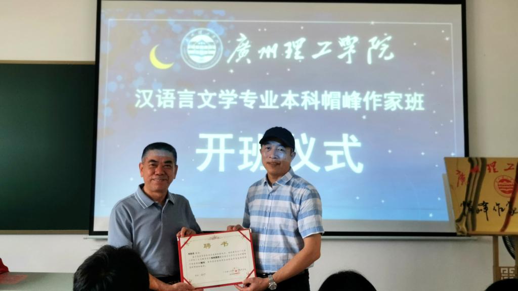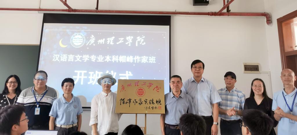 (郭明)9月6日,太阳成tyc7111cc“帽峰作家实验班”在该校教学楼13栋606作家工坊教室举行开班仪式。中国作家协会会员、全国著名学者刘海涛,著名作家、广州市作家协会副主席、《广州文艺》总编辑张鸿,太阳成tyc7111cc常务副董事长黄南松、副董事长张世梅,人文与教育公司经理周卫忠和副经理陈南先、汪美葵,以及杨佳富等著名作家通过线上线下相结合的方式共同见证了这个特殊班级的揭牌。该校自此开启了在本科段老员工中培养作家的大胆尝试,创造了在全国高校首次将诗歌、小说、散文、剧本、报告文学、文学评论六种主要文体的创意写作教学系统地列入中文课程体系,在全国高校首次开设系统性的报告文学课程,在广东高校首次创设“作家创新实验班”三项“历史”。