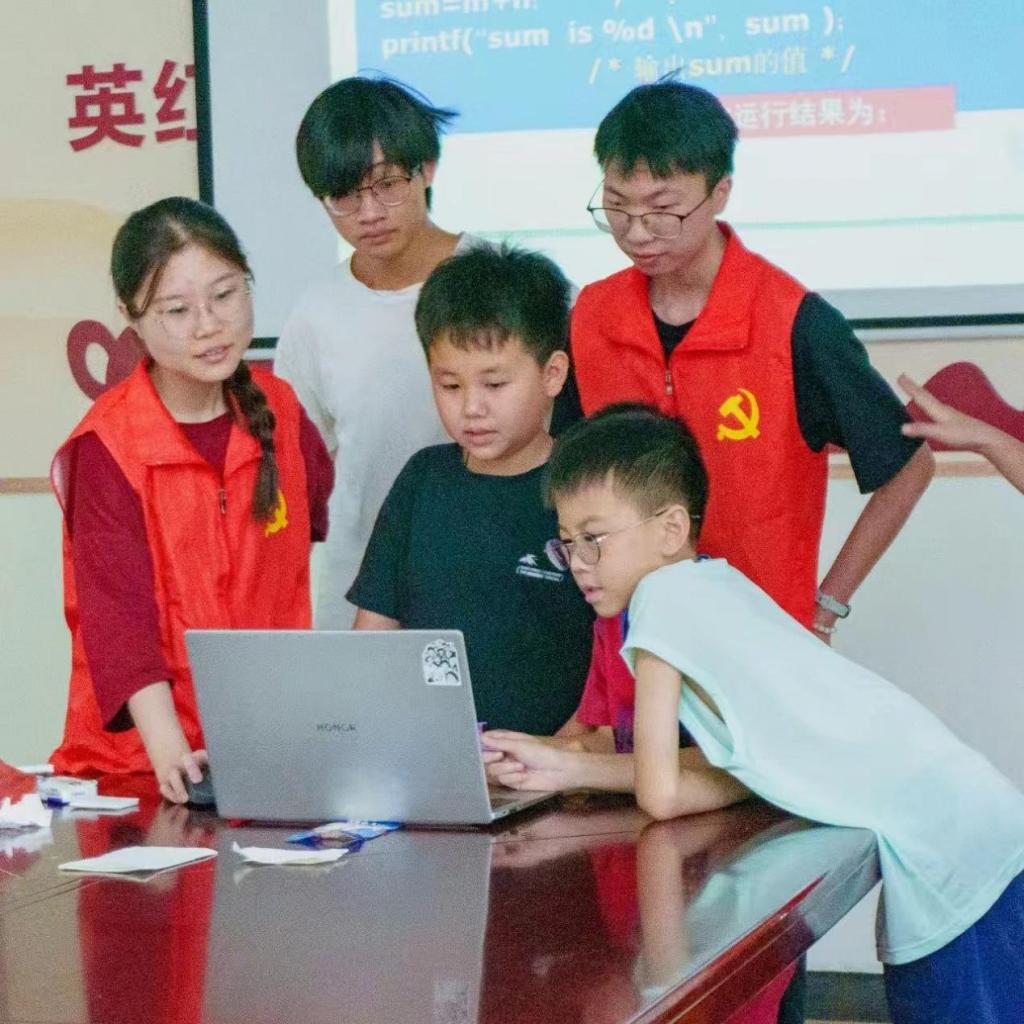 上午支教课程丰富。首节电子编程课,队员们以趣味编程带孩子们探索科技魅力,孩子们动手时惊叹:“原来电脑还能这样玩!”