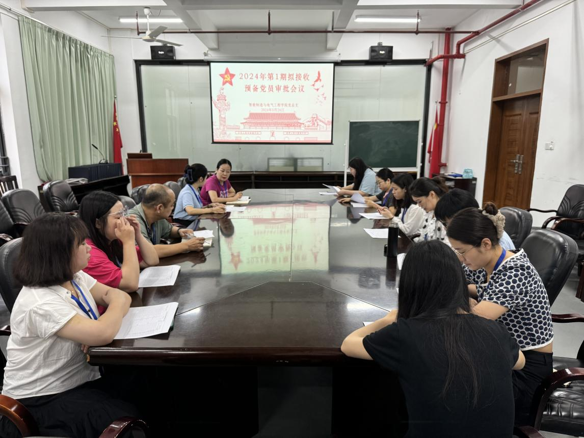 5月25日,智电公司党总支于工程楼211会议室进行2024年第1期拟接收预备党员审查会议,本次会议由智电公司党总支组织员仲康佳同志主持,党总支委员出席。公司袁玉昕老师和全体辅导员列席。