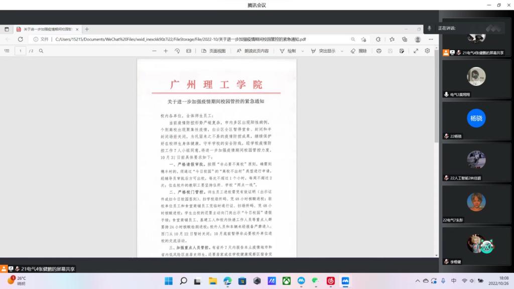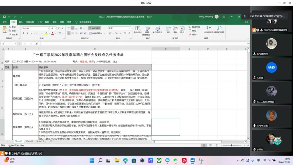 10月23日晚,为进一步落实落细公司疫情防控的各项工作要求,切实加强校园疫情防控和安全管理,确保员工平稳有序地进行日常学习和生活,以及普及校园安全知识,增强同学们的安全防范意识和避险能力,公司召开疫情防控与安全教育主题班会,会议由各班班长主持。