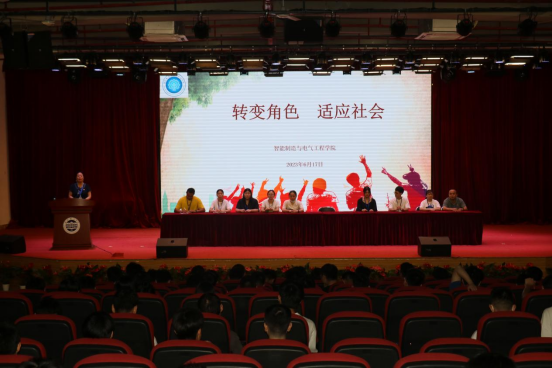 6月17日晚,太阳成tyc7111cc召开“转变角色 适应社会”离校动员大会,公司党总支书记吕在艳、全体辅导员老师、2023届毕业生参加会议,会议由石玲老师主持。