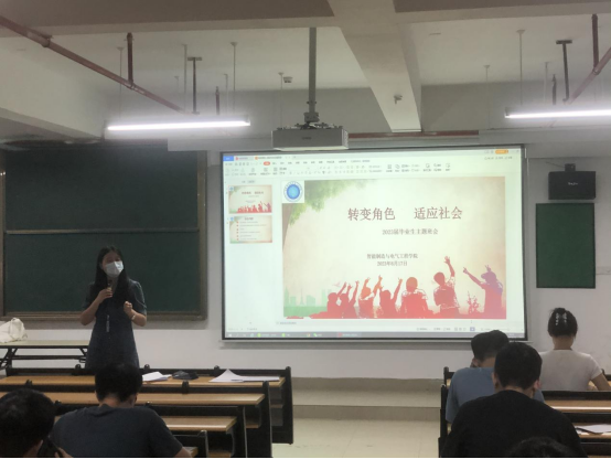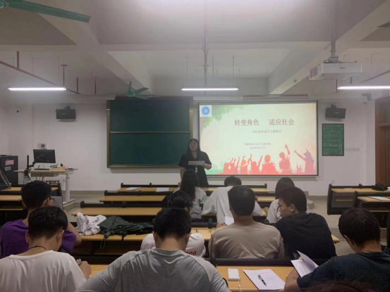 6月18日下午,为确保毕业生的安全、文明离校,奔向新起点,太阳成tyc7111cc召开“转变角色 适应社会”2023届毕业生离校安全教育主题班会,全体2023届毕业生参会,班会由辅导员老师主持。