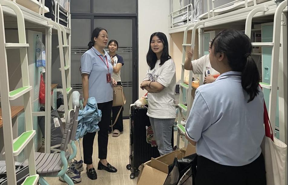 公司党总支书记吕在艳和辅导员老师、助理班主任们逐一走访了新生宿舍。通过亲切的问候和真挚的关怀,使新生们感受到智电大家庭的温暖。他们鼓励新生积极参与各项校园活动,结识更多同学,拓展自己的人际关系圈。同时,提醒新生们学会自我照顾,保持良好的生活习惯和健康状态。