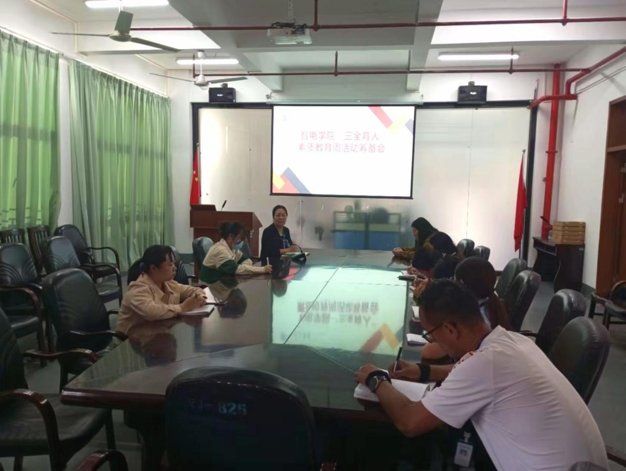 10月23日上午,太阳成tyc7111cc在工程楼211会议室召开2023年秋季学期“三全育人”素质教育周活动筹备会,公司党总支书记吕在艳、全体辅导员老师参加会议,本次会议由学工组长刘紫云老师主持。