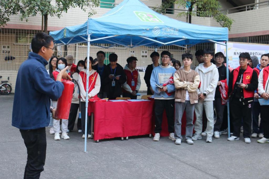 活动开始,辅导员付涛老师为支部党员们介绍了此次活动的目的和意义,强调了员工党员应该在社区党建和思想政治工作中起重要作用。随后,消防办李小辉老师给支部党员们讲述了宿舍违规用电的危害,并组织大家集体学习了灭火器的正确使用方法。支部党员们纷纷动手实操了灭火器的使用,并交流分享了自己的学习心得体会。在集体学习结束后,智电公司员工党员联合第三社区社区服务中心的同学,向第三社区同学们发放用电安全知识的宣传资料,声文并茂地向同学们讲述在宿舍生活中安全用电的基本常识,细心张贴安全用电小贴士在宿舍区的醒目位置。同时通过用电安全趣味问答的方式,在轻松愉悦的氛围里有效提高了第三社区同学们的安全用电认识,筑牢了同学们安全用电的思想防线。