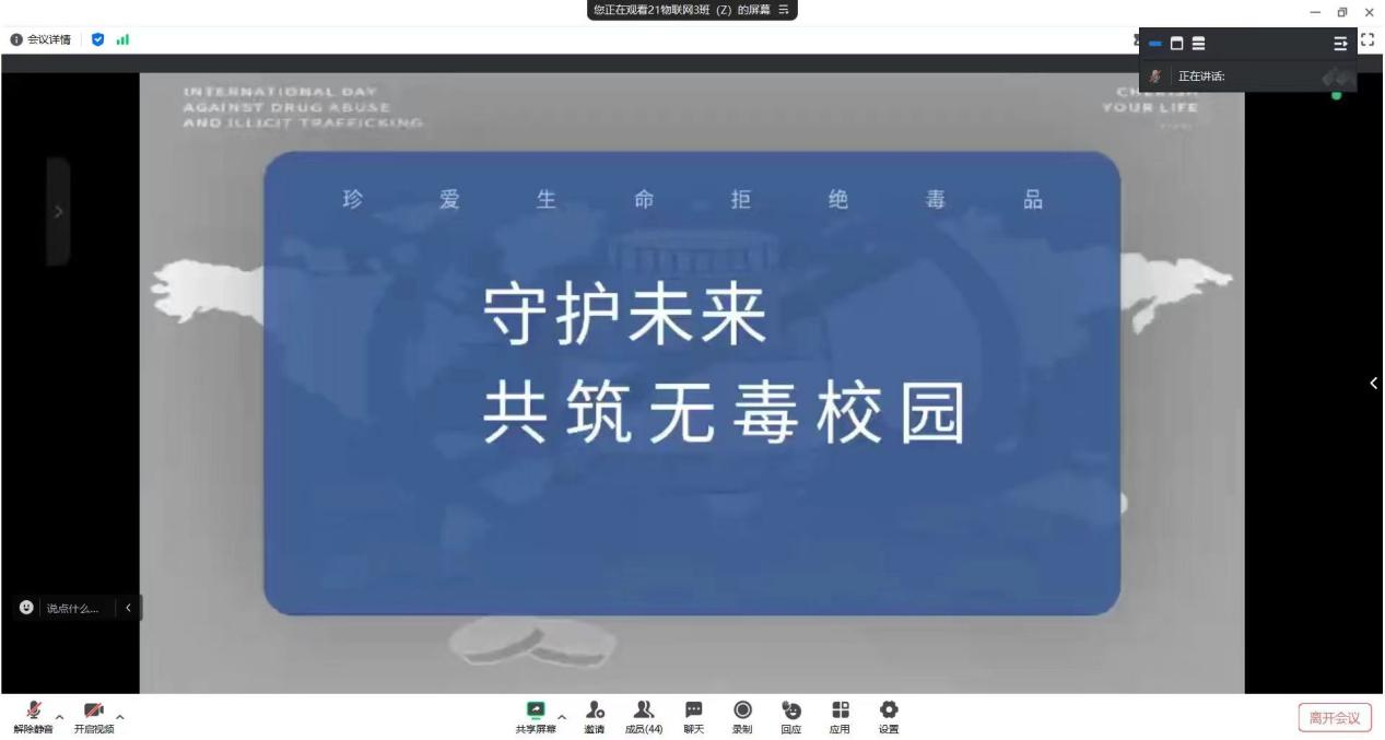 3月17日晚,为了强化同学们的毒品预防意识,智电公司开展了“禁毒”主题班会。采用线上线下相结合的方式进行,由各班辅导员和团支书兼班长主持,公司全体同学参加。