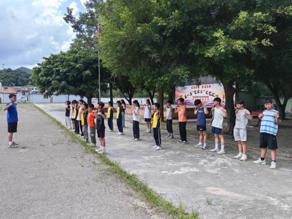 随后,首日的行程迎来了最后的一节课——活力四溢的体育课。课上,梁展鸿同学引领小朋友们有序地进行热身运动,充分活动身体的各个关节。热身完毕,精彩的体育项目逐一登场,篮球的激情碰撞、乒乓球的灵动跳跃、羽毛球的轻盈翻飞,让整个操场充满了活力与激情。