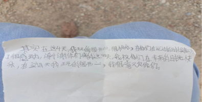 南冲公司的小朋友写给队员的手写信