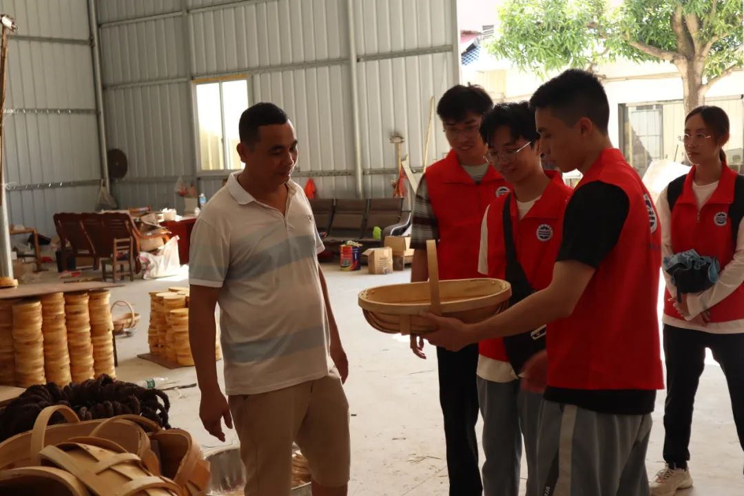 7月6日,广理沁乡突击队在唐书记和伍书记的带领下,再次来到了长湖村,去了解当地特有的“洋篮文化”。之后陈站长带着我们团队来到了顺意工艺厂。该工艺厂是一家历史悠久、技艺精湛的竹木工艺品制造企业。通过传承和创新传统手工艺,该工艺厂不仅保护了非物质文化遗产,还促进了当地经济的发展和就业。其生产的洋篮等产品以精美的工艺和独特的艺术风格赢得了市场的广泛认可。不仅如此,该工艺厂已有超过30年的发展历程,经历了三代人的传承与创新。创始人及其后代对洋篮这一传统手工艺充满感情,致力于将其传承并发扬光大。