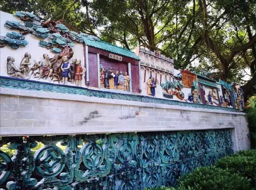 实践队成员跟随何师傅来到孙中山故居进行参观,这里不仅能感受到孙中山先生生活过的气息,更见证何师傅特制专属孙中山故居的一套陶塑瓦脊。在孙中山故居非遗展示纪念区引人瞩目的当属一条长达 6 米,描述少年孙中山故事的陶塑瓦脊。