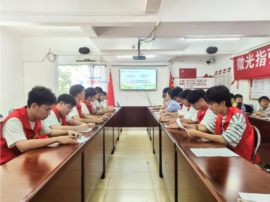 上午9时到达目的地后,实践团与新世界社区开展关于百千万工程暑期社会实践乡村儿童公共服务与文化保育座谈会。会上,新塘镇新世界社区萧顺群书记及社区工作人员代表新世界社区对公司实践队的到来表示热烈欢迎,并对实践队接下来公益课堂表示期待与支持。