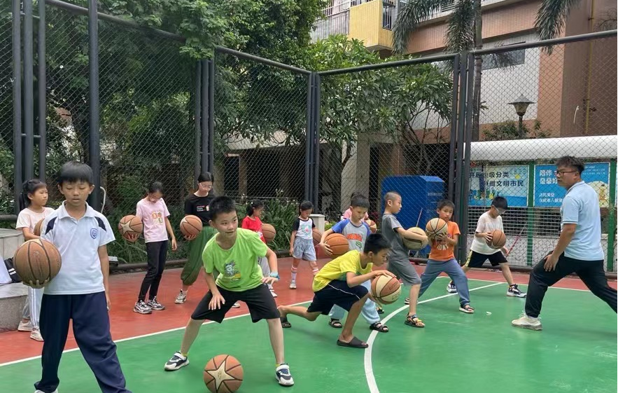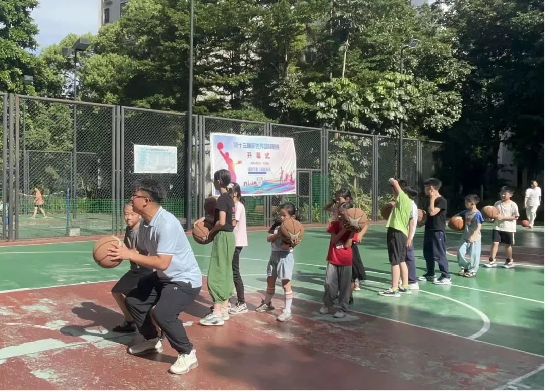 下午的课业辅导课后,实践团特别邀请了通识教育公司体育部专任教师党航来到新世界社区户外篮球场为社区少年们开展篮球教学课。上课开始,党老师带着小朋友们进行热身活动,有效激活身体体能,避免在运动中损伤。随后,老师开始教授小朋友们运球、投球的正确姿势与方法,并亲身示范标准动作,让孩子们听懂看懂。此时,孩子们已兴致昂然,一个一个排着队练习投球。通过一系列动作的指导练习,孩子们都有了不同程度的进步,收获了专属体育课的快乐。时间不知不觉过去,临近下课,小朋友们依然意犹未尽地练习投篮。随着哨声响起,孩子们依依不舍与党老师告别。本次户外篮球课,是理论与实践练习的结合,实践知识的讲解使员工们更好地掌握篮球知识,对篮球运动有初步认识;篮球练习则使员工们快速提升球感,养成扎实基本功,让孩子们感受到篮球运动的快乐与魅力。