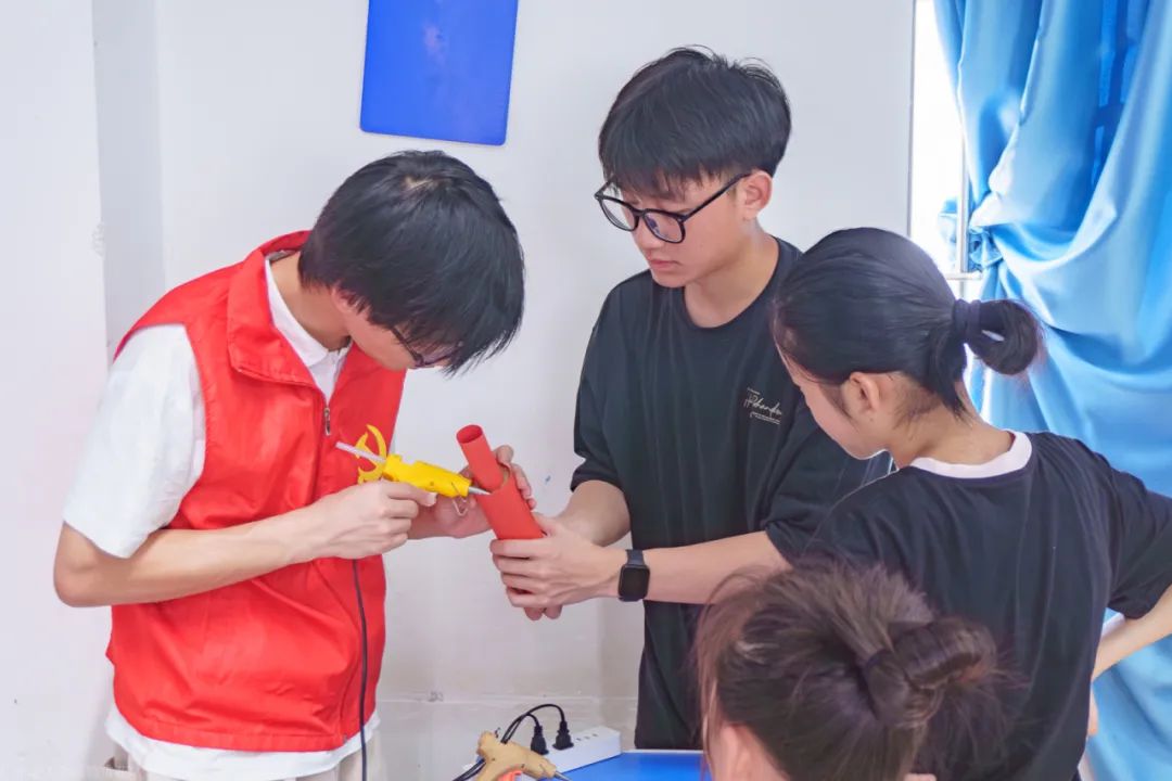上午的课程安排丰富多彩,包括了望远镜原理与制作、英语教学以及粘土手工制作。在望远镜原理与制作的课堂上,队长杨权睿用通俗易懂的方式向孩子们介绍了伽利略式望远镜的工作原理,并与队员一同带领他们动手制作属于自己的望远镜。