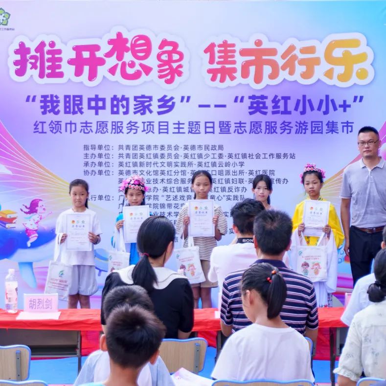下午,英红镇云岭小学内举办了《“摊”开想象,“集市”行乐》“我眼中的家乡”——“英红小小+”红领巾志愿服务项目主题日暨志愿服务游园集市活动。多位地方领导和嘉宾出席了此次活动,包括英德市民政局副局长胡烈剑、清远市社会工作督导办公室督导王华英、共青团英德市委员会挂职副书记苏思慧、英红镇副镇长潘智胜、英红镇云岭小学董事长刁长敬出席了此次活动,现场氛围热烈。