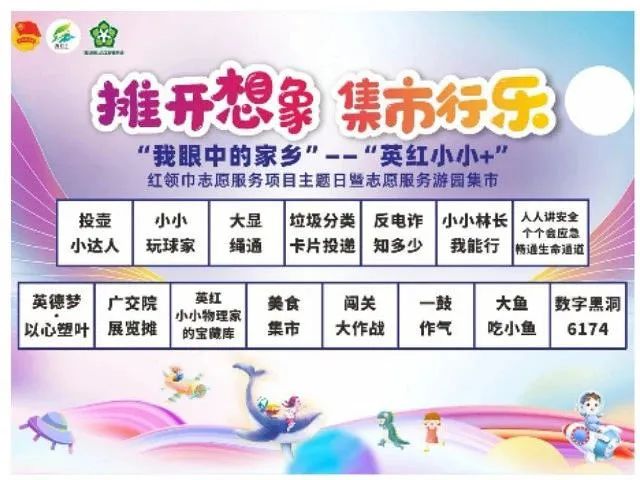 “锦带花”突击队在本次活动中设置了“英红小小物理家的宝藏库”摊位。在摊位上,队员们展示了“英红小小物理家”班级小朋友们的成果,并当小朋友们正确回答出我队给出的题目后,盖章证明通过了“英红小小物理家的宝藏库”摊位。小朋友们在集齐多个摊位的章后,可以到奖品领取处领取奖品。