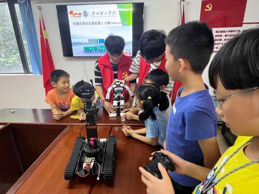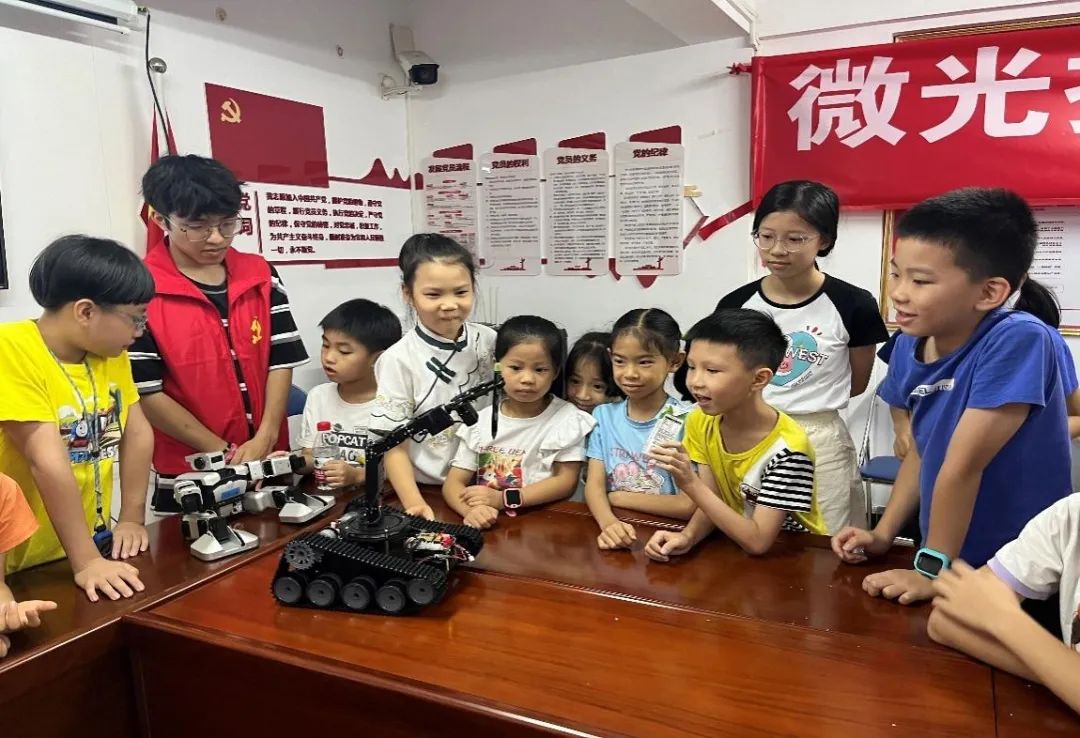 7月20日,智电公司微光筑梦实践团携竞赛作品“工程机器人”来到社区,为小朋友们带来了亲身操体验的机会。由21机器人1班的许锴烨同学负责讲解,21机器人1班叶天宇同学和22机器人1班的吕立濠同学带动小朋友们一起操作机器人,生动了解了机器人的构造与原理,并亲自上手组装、操作竞赛机器人,亲身感受机械运动的神奇与魅力。此外,通过播放全国老员工机器人大赛Robocon的竞赛视频,让孩子们能够感受到现场的氛围,提高他们对机器人的兴趣。