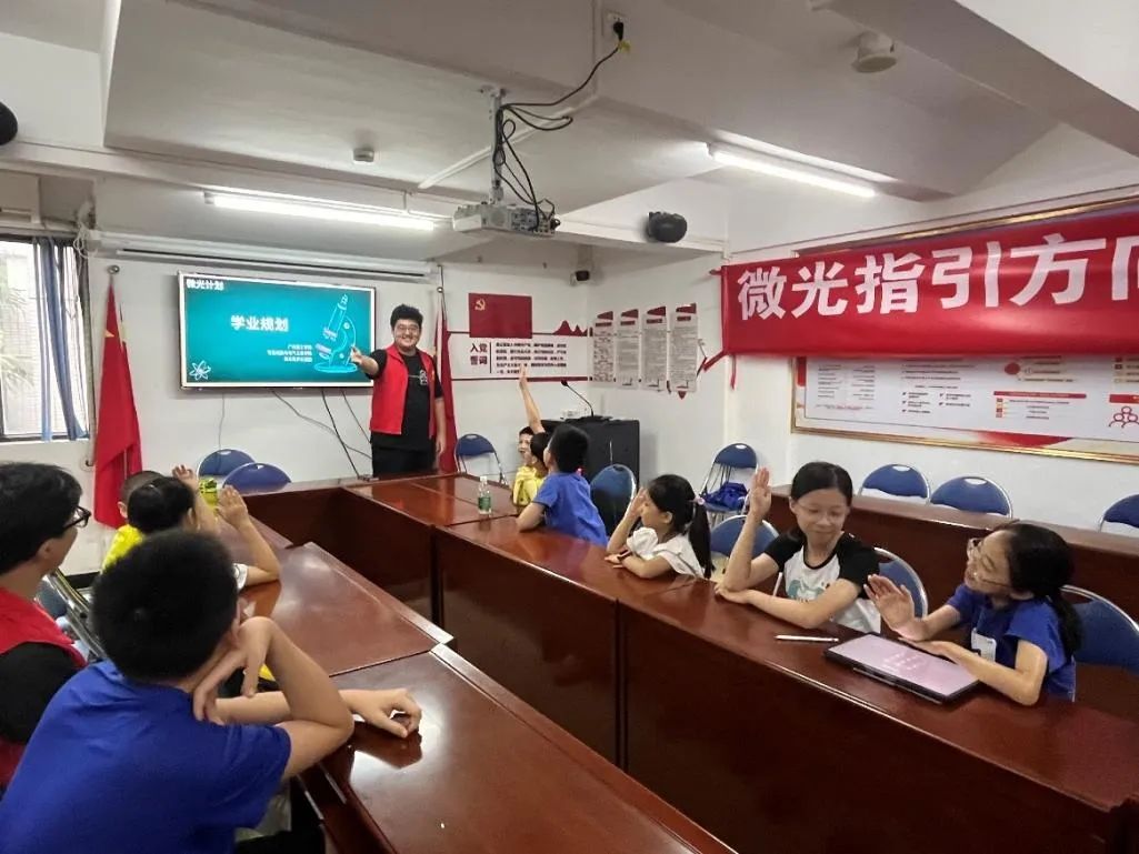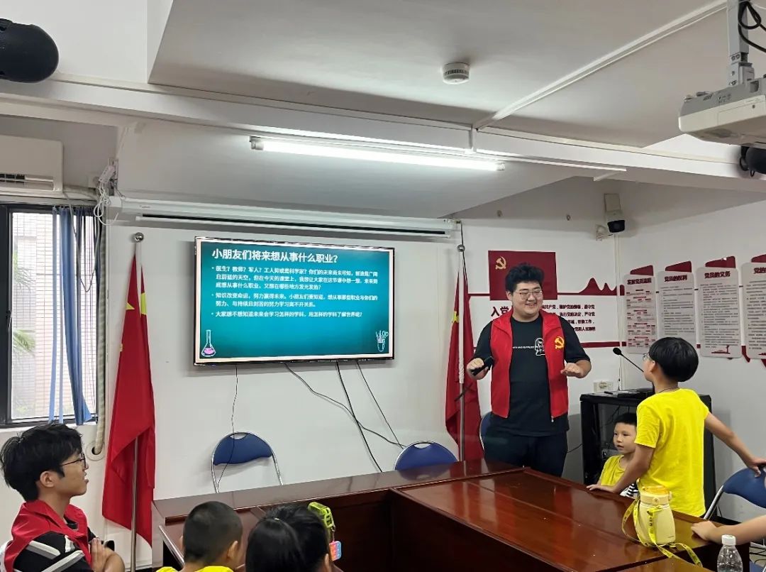活动中,21机器人1班的杨力铭同学为社区小朋友们详细介绍了初高中各类学科的相关知识,并实践团成员的引导下,畅想未来的职业道路,描绘着自己心中的蓝图。实践团还根据每个孩子的兴趣与特长,为他们进行初步的职业规划,点燃了他们对未来的无限憧憬与期望。在交流中,孩子们的眼中闪烁着对科学的渴望与对未来的憧憬,整个过程充满了希望与动力。