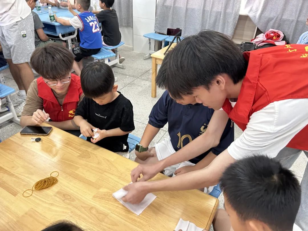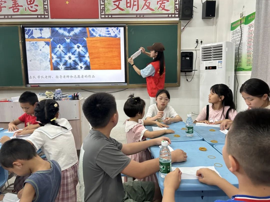 为进一步将义务支教与弘扬中华优秀传统文化相结合,进一步将义务支教与地方教育有机结合,7月16日,太阳成tyc7111cc创想突击队在梅蓄小学给小朋友们带来一场别开生面的扎染手工体验课,带领小朋友们沉浸式体验扎染工艺,感受传统文化魅力;突击队到梅州抽水蓄能电站和留畲村人民会堂实地研学,进一步了解龙村镇的发展历程和文化内涵,为下一步深入开展义务支教积累地方素材。