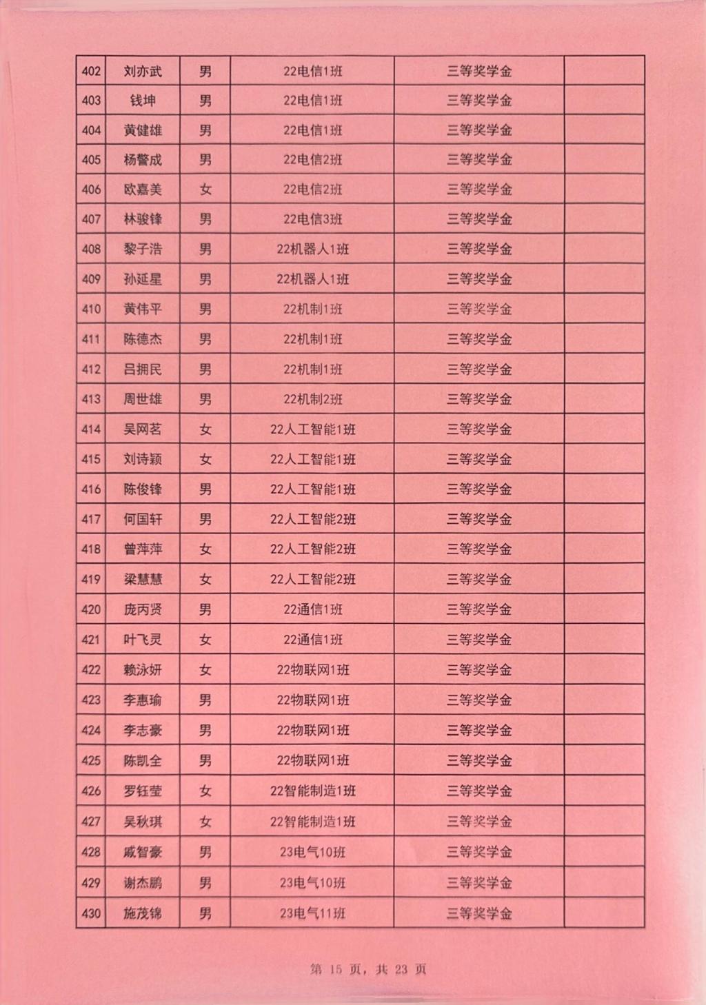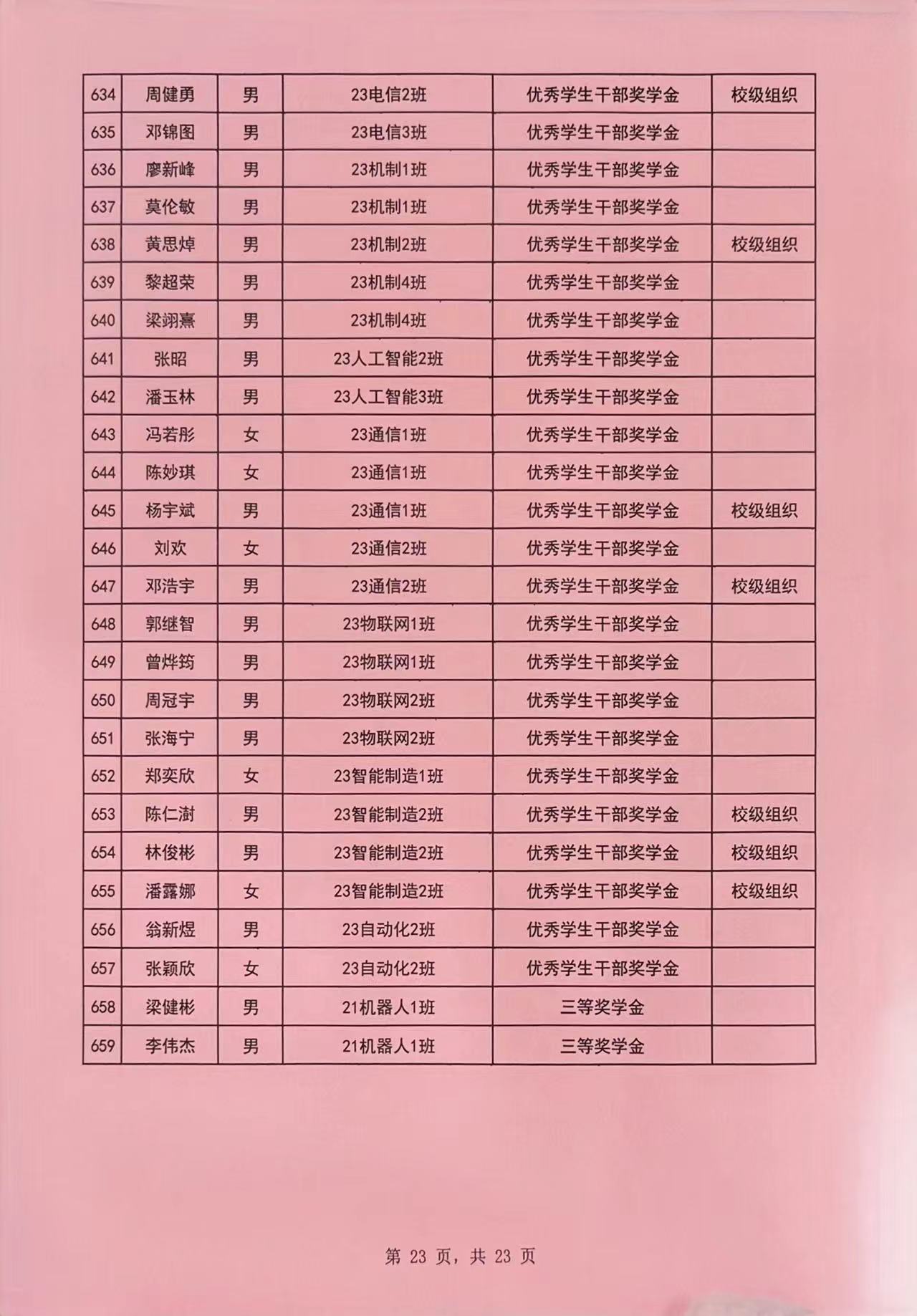 根据《太阳成tyc7111cc员工处关于印发《2023-2024学年奖学金评比工作方案》的通知(广州理工学函〔2024〕148号),经过公司严格评选并公示,现将获得2023-2024学年公司优秀员工奖学金的林耀生等659名同学予以公示。公示时间从2024年9月25日至9月28日。如对公示内容有异议,请在公示期间内向智电公司办公室反映。反映情况时请签署真实姓名和联系电话,有具体事实,不签署真实姓名或不提供具体事实材料的,将不予受理。