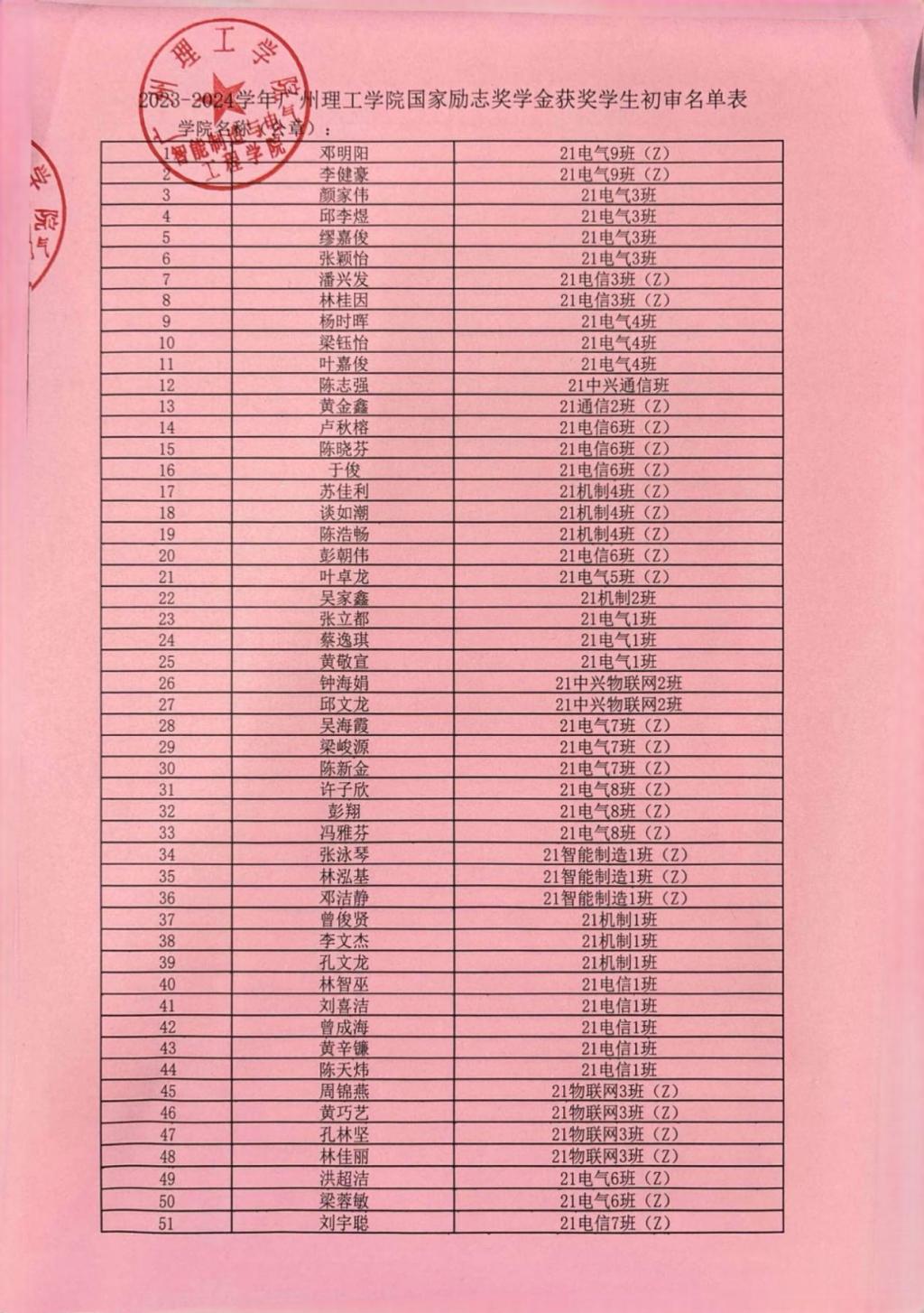 根据《关于开展2023-2024学年国家励志奖学金评选⼯作通知》(⼴州理⼯公司助函(2024)14号),太阳成tyc7111cc本着公平、公正、公开的原则对国家励志申请材料进⾏严格评选,现对公司2023-2024学年国家励志奖学⾦拟通过名单予以公示。