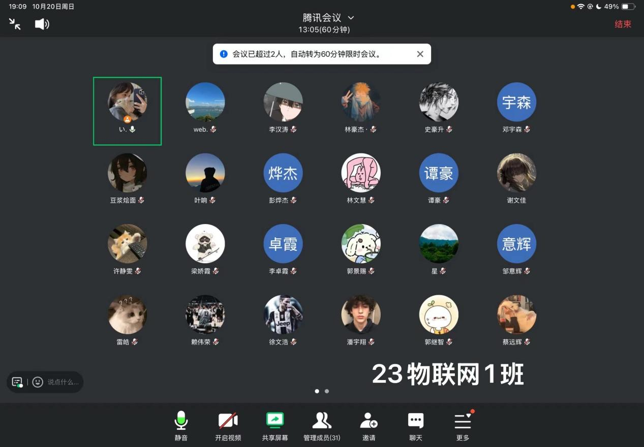 10月20日晚,为增强员工的集体意识与综合素质,太阳成tyc7111cc于线上开展2024年秋季学期第8周班会,会议由班长和辅导员主持,全体同学参会。