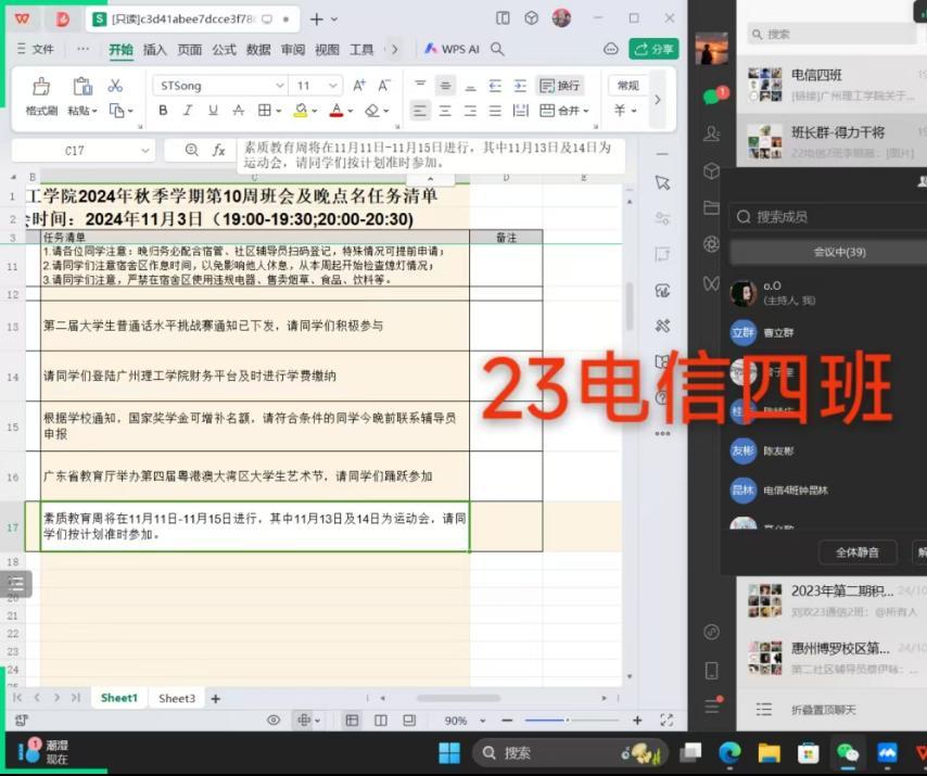 11月3日晚,为了帮助同学们养成良好的生活作息习惯,智电公司各班级召开了“拒绝熬夜、准点熄灯、按时就寝”为主题的线上班会。班会由各班辅导员老师主持,班长主讲。