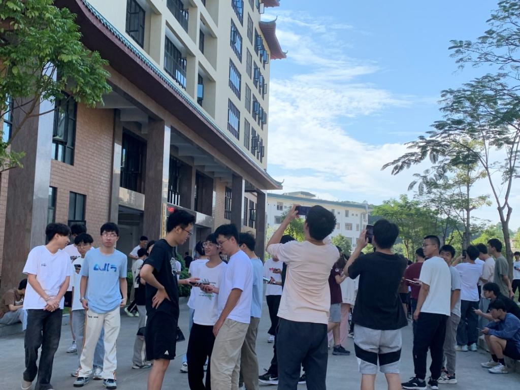 活动开始,全体同学在小足球场集合,经过简单的热身后,随着一声清脆的哨响,环校跑活动正式拉开帷幕。在领跑人的带领下,大家从小足球场出发,途径校教学楼、图书馆、宿舍楼等多个地标性建筑,在工程楼拍照打卡之后,最终又回到起点,全程充满了挑战与乐趣。尽管天气炎热,但同学们的热情丝毫未减,他们顶着烈日,挥洒汗水,相互鼓励,不抛弃、不放弃地向终点前进。道路两旁的志愿者们积极为大家指引路线,摄影师则忙碌地捕捉着每一个精彩瞬间,整个校园充满了活力与激情。