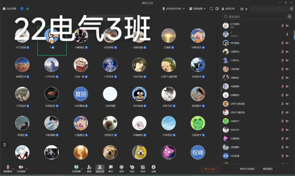 为了增强同学们的自律意识,营造优良的班级学习氛围,12 月 15 日晚,智电公司召开秋季学期第16周线上班会,由各班班长和辅导员主持,全体员工参加。