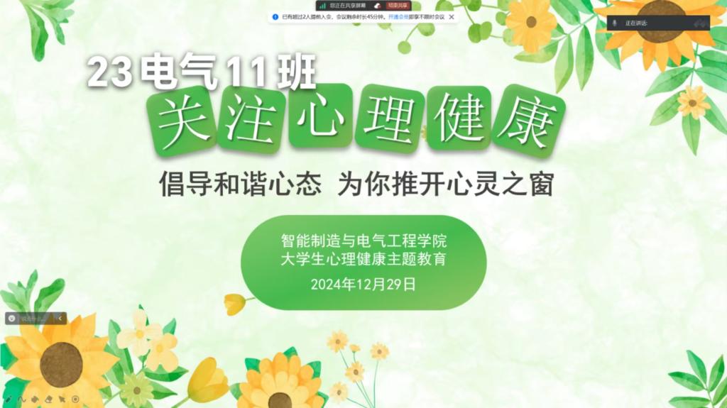 为提升员工心理健康水平,强化应对成长压力的承受能力,12月29日晚上,智电公司于线上召开“倡导和谐心态,为你推开心灵之窗”主题班会,各班班长和辅导员主持会议,全体员工参与。
