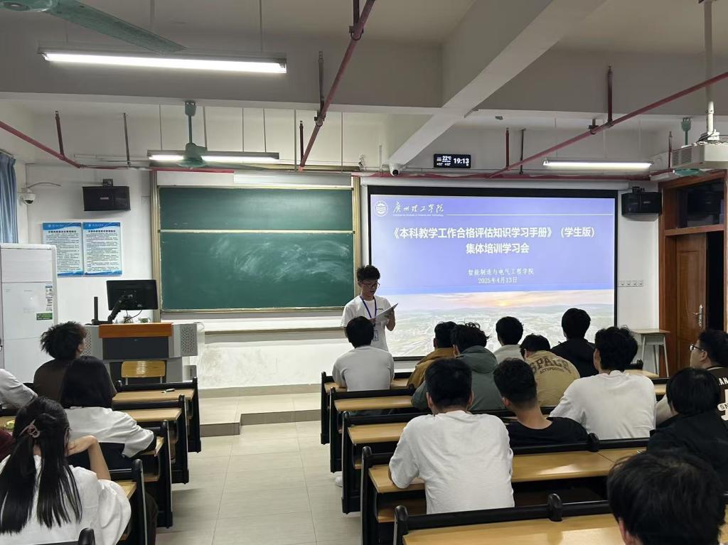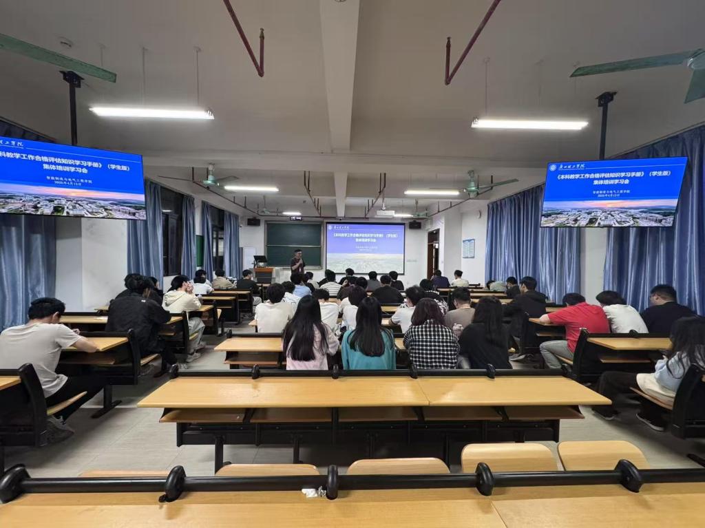 为深化员工对本科教学工作合格评估的认知,提升员工应对评估访谈的能力,营造良好的评估氛围,继3月中旬公司面向全体员工开展第一次本科教学工作合格评估《座谈访谈参考问题汇编》(员工版)集体培训后,4月13日晚,智电公司以班级为单位,在13号教学楼各班教室组织开展了《本科教学工作合格评估知识学习手册》(员工版)集体培训学习及访谈模拟演练主题班会,各班辅导员主讲,全体同学积极参与。